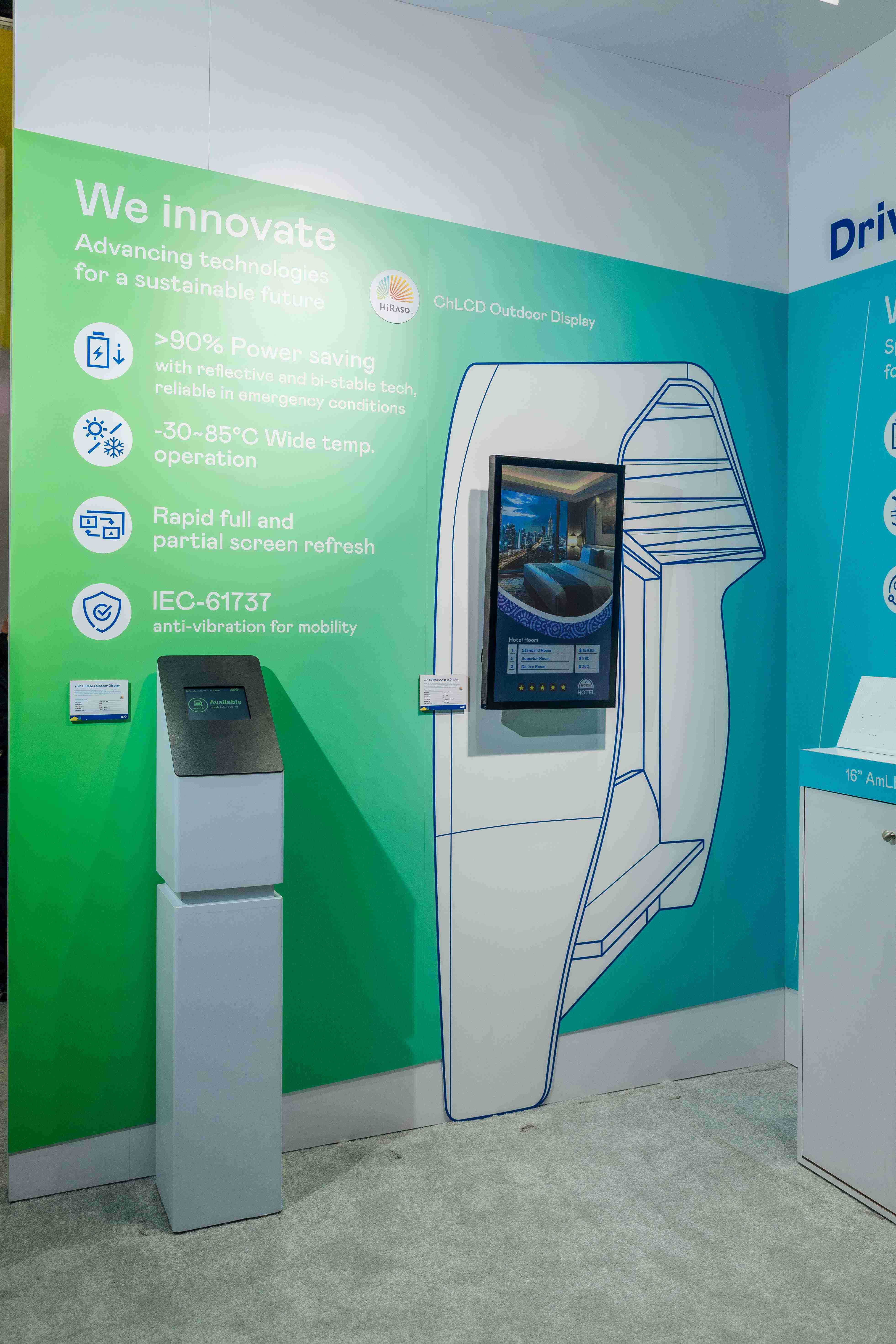 HiRaso胆固醇液晶显示器运用反射环境光线的方式,,呈现影像显示时零耗能的环保省电诉求,,光线愈强愈能呈现绝佳的色彩饱和度及显示效果,,,,同时在摄氏-30度至85度间宽温的使用优势,,,,为户外电子看板的新首选。。