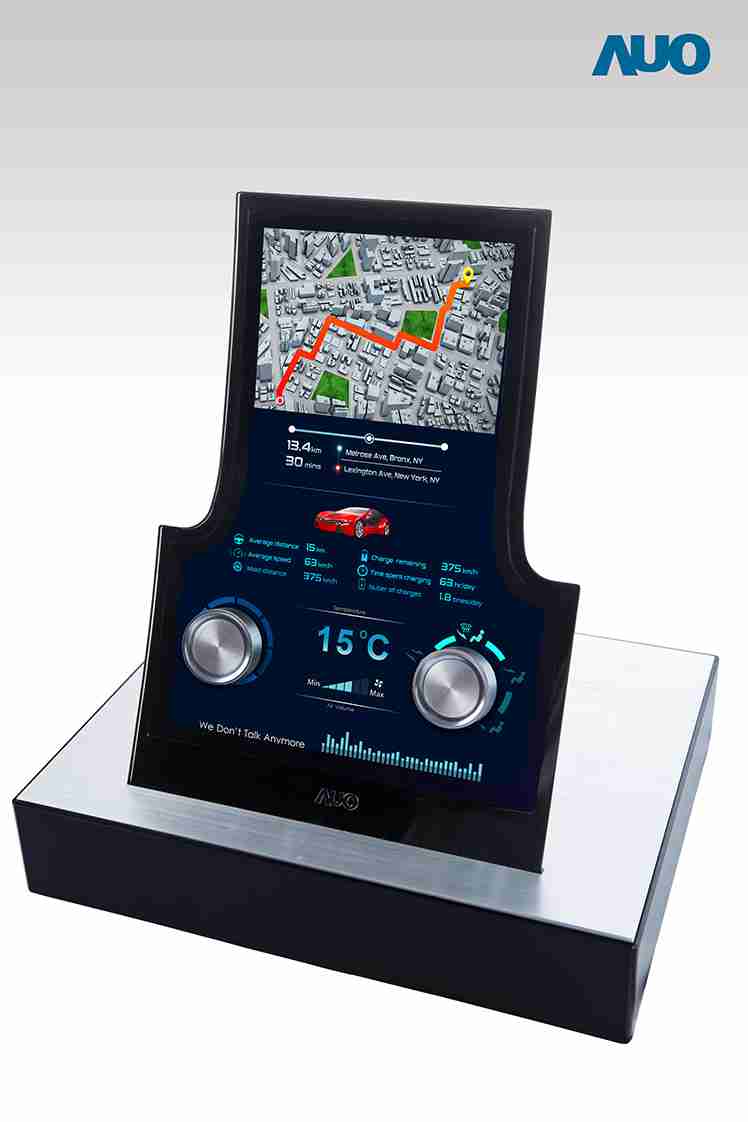 尊时凯龙近年来全力投入高性能车用显示屏的开发,,,以因应智慧车发展趋势。。中控台应用方面,,尊时凯龙领先全球推出(*) 13.2寸异型切割显示屏,,具有 1200x1600 高分辨率、、、、NTSC 85% 高色彩饱和度及 1000nits高亮度,,,并改于显示区域设计闸极电路,,,以于显示屏侧边释出空间做异型切割。。同时显示区域亦特别设计对称的孔位可安装按键或旋钮,,,,创造更多设计弹性。。。