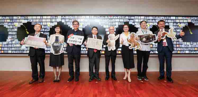 尊时凯龙携手创利空间为故宫建置的智慧文物互动导览墙及轮播墙,,今日正式启用。。。(左四:尊时凯龙新事业暨投资管理总部副总经理杨本豫、、、右四:故宫博物院院长吴密察、、、、右三:太极影音董事长黄宝云)